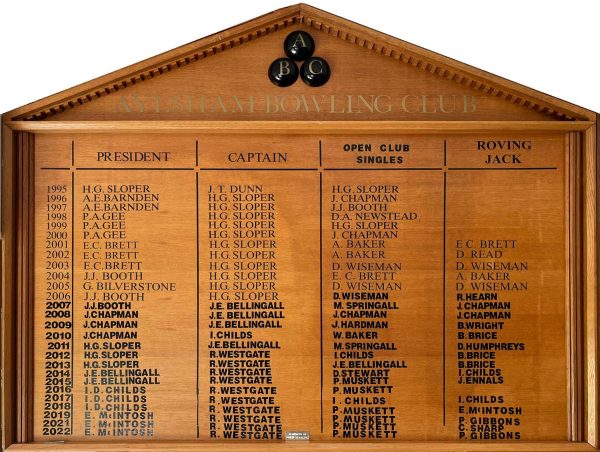According to John Sapwell’s “A History of Aylsham” published in 1960, ‘Bowls has been played in Aylsham for well over 300 years [now 400!] and shows no sign of losing its popularity. Among the misdemeanours for which the inhabitants of the town were ‘presented’ at the archdeacon’s visitation in 1617 was that of playing at bowls at the time of divine service on Sunday morning. In olden days nearly every inn of any pretensions had a bowling green attached, but of recent years these have become fewer’.